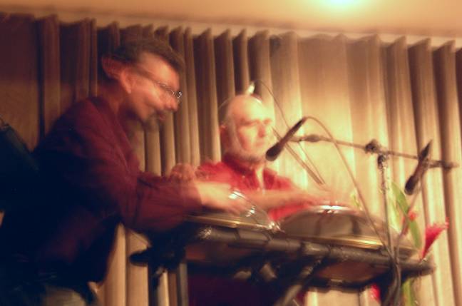 GalleryOuarzazate, Morocco, April 2007. These two Tuareg drummers had a small shop in the old market, selling fabrics and rugs. We jammed for hours, and collected quite a crowd for their shop. Jamming with a street violinist in Budapest, 2002: Omega Concert - May 19, 2007. Photos by Vera Shanov. (more Omega Photos are here) Firebird Festival - December 16, 2006, Phoenixville PA. Photos by Ron Greenberg. Playing at an on-the-beach wedding in St. Thomas - November 2006 Here's some pictures of the Nashville gig at The Bluebird Cafe! (Please note "Dolly", my backup singer in the last picture):
